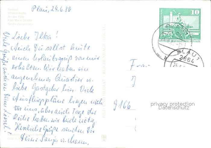 72319876 alte Postkarte Plau See Seelust Strandstrasse Elde Burgstrasse postalisch gelaufen Erhaltung siehe scans KatCode: 11110013060061