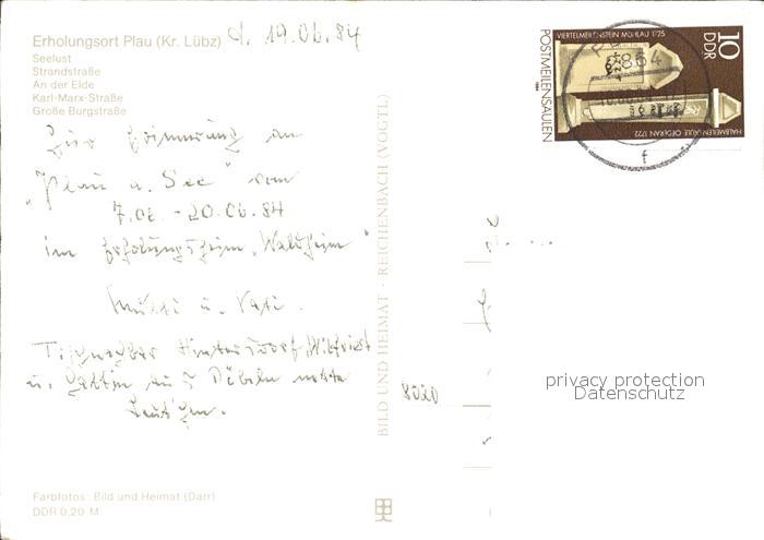 72370176 alte Postkarte Plau See Seelust Strandstrasse Karl-Marx-Strasse postalisch gelaufen Erhaltung siehe scans KatCode: 11110013060061