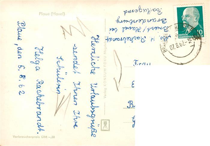 73907901 alte Postkarte Plaue Havel Schleuse An der Plauer Schleuse Gaststaette Seeblick Plauer See postalisch gelaufen Erhaltung siehe scans [FriedD77] KatCode: 11110012051000