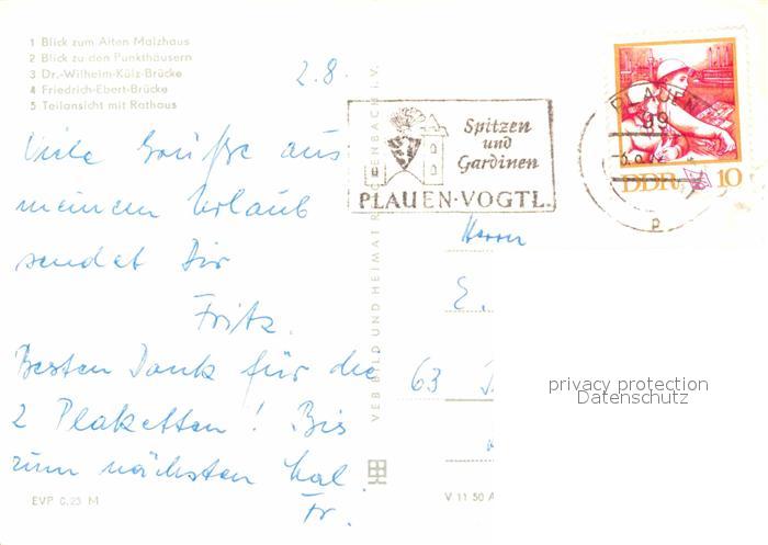 72637129 alte Postkarte Plauen Vogtland Altes Malzhaus Punkthaeuser Doktor Wilhelm Kuels Bruecke Rathaus postalisch gelaufen Erhaltung siehe scans [AndreD76] KatCode: 11110014166000