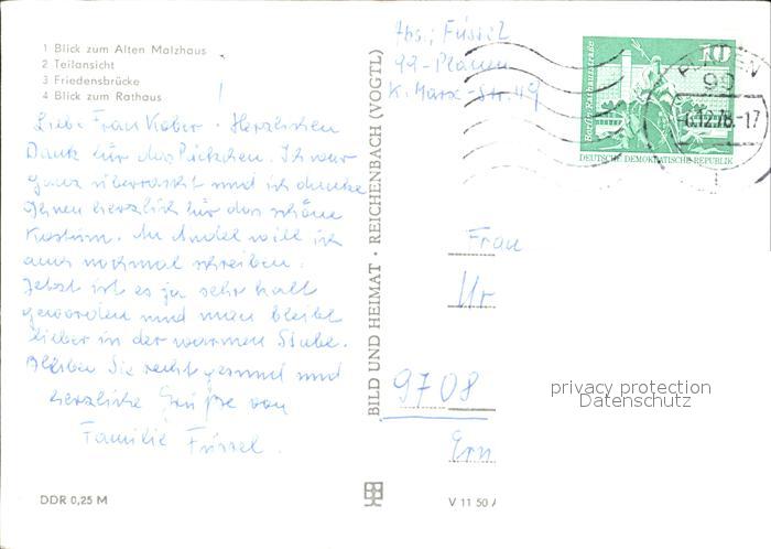 72381956 alte Postkarte Plauen Vogtland Altes Malzhaus Teilansicht Friedensbruecke Rathaus postalisch gelaufen Erhaltung siehe scans KatCode: 11110014166000