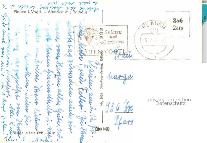 72644704 alte Postkarte Plauen Vogtland Altmarkt Rathaus postalisch gelaufen Erhaltung siehe scans [AndreD76] KatCode: 11110014166000