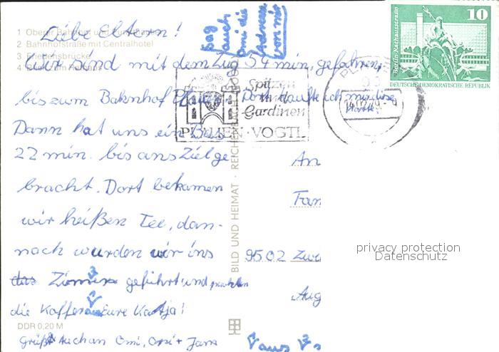 72335721 alte Postkarte Plauen Vogtland Bahnhof Punkthaeuser Bahnofstr Centralhotel Friedensbruecke Rathaus postalisch gelaufen Erhaltung siehe scans KatCode: 11110014166000