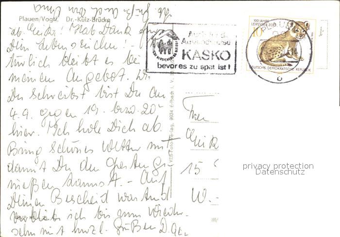72478235 alte Postkarte Plauen Vogtland Dr Kuelz Bruecke Kirche postalisch gelaufen Erhaltung siehe scans KatCode: 11110014166000