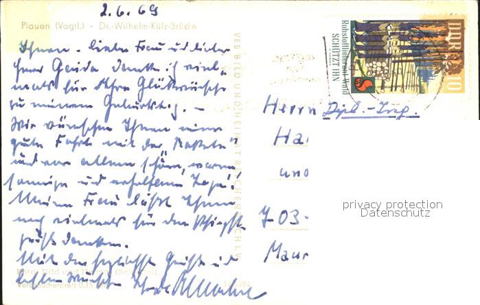 72427115 alte Postkarte Plauen Vogtland Dr Wilhelm Kuelz Bruecke postalisch gelaufen Erhaltung siehe scans KatCode: 11110014166000