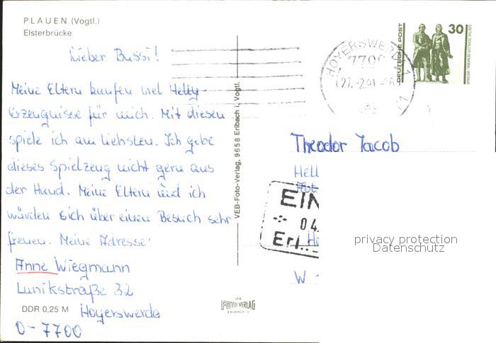72137099 alte Postkarte Plauen Vogtland Elsterbruecke postalisch gelaufen Erhaltung siehe scans KatCode: 11110014166000