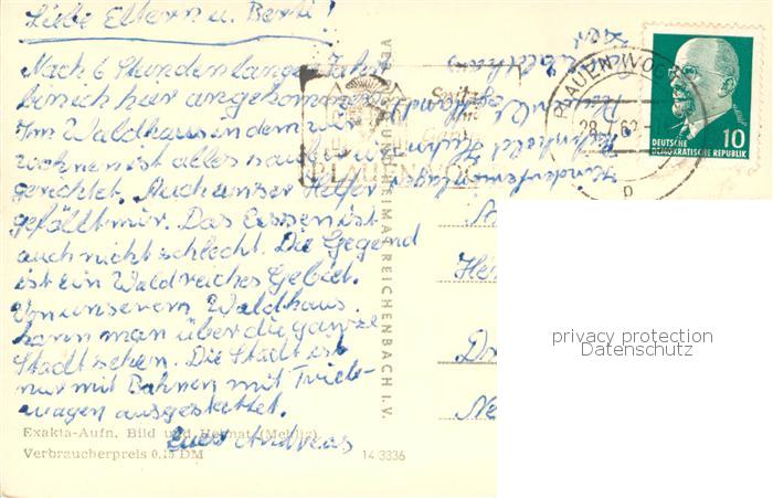 73750358 alte Postkarte Plauen Vogtland Leninplatz Friedrich Ebert Bruecke Rathaus Platz der Roten Armee postalisch gelaufen Erhaltung siehe scans [WerneD78] KatCode: 11110014166000