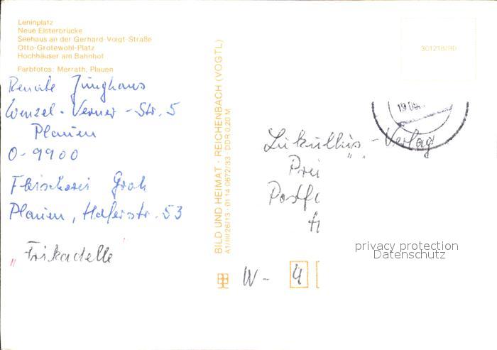 72529204 alte Postkarte Plauen Vogtland Leninplatz Neue Elsterbruecke Seehaus Otto Grotewohl Platz Hochhaeuser am Bahnhof postalisch gelaufen Erhaltung siehe scans KatCode: 11110014166000