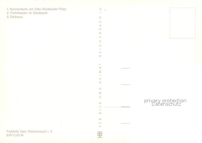 73039929 Plauen Vogtland Nonnenturm Parktheater Stadtpark Rathaus postalisch nicht gelaufen Erhaltung siehe scans [WerneD78] KatCode: 11110014166000
