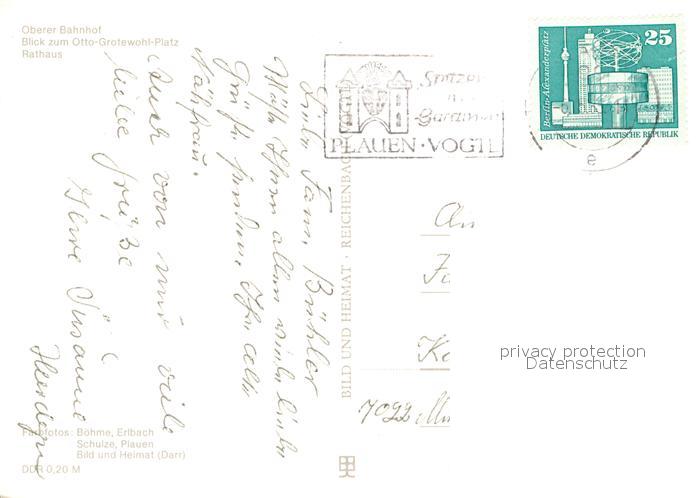 72962649 alte Postkarte Plauen Vogtland Oberer Bahnhof Otto-Grotewohl-Platz Rathaus postalisch gelaufen Erhaltung siehe scans [NatalD47] KatCode: 11110014166000