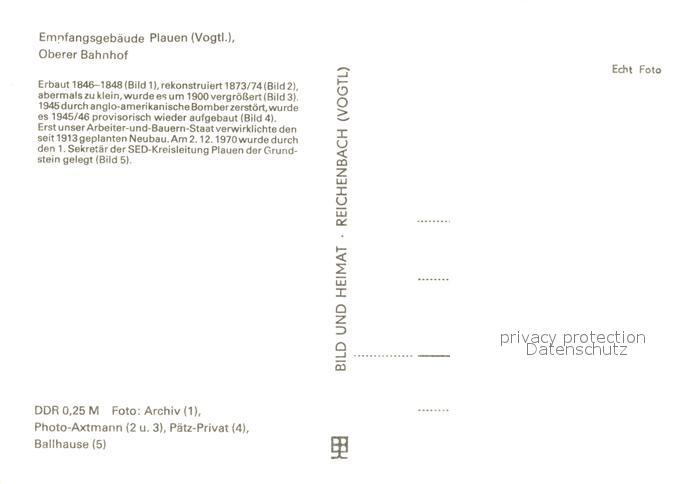73593319 Plauen Vogtland Oberer Bahnhof Stadt der Spitzen postalisch nicht gelaufen Erhaltung siehe scans [FriedD77] KatCode: 11110014166000