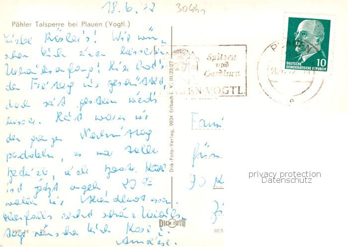 73832123 alte Postkarte Plauen Vogtland Poehler Talsperre Campingplatz postalisch gelaufen Erhaltung siehe scans [WerneD78] KatCode: 11110014166000