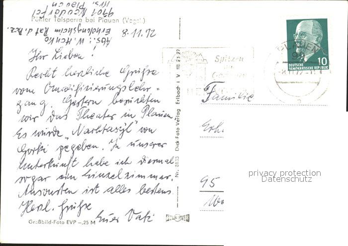 71978434 alte Postkarte Plauen Vogtland Poehler Talsperre Zeltplatz Camping postalisch gelaufen Erhaltung siehe scans KatCode: 11110014166000