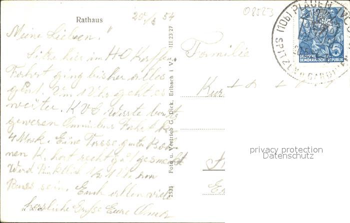 72091365 alte Postkarte Plauen Vogtland Rathaus postalisch gelaufen Erhaltung siehe scans KatCode: 11110014166000