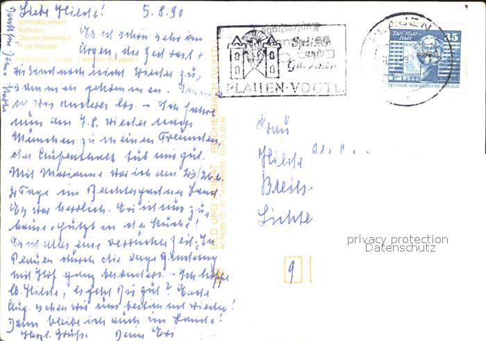 alte Postkarte Plauen Vogtland Rathaus Bahnhof Punkthaeuser postalisch gelaufen Erhaltung siehe scans