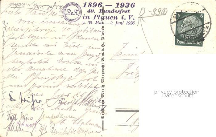 41990290 Plauen Vogtland Rathaus Stadt der Spitzen Stickerei Wappen Stempel 40. Bundesfest Kuenstlerkarte postalisch gelaufen Erhaltung siehe scans Alte Ansichtskarte Postkarte alte Postkarte Frie Katcode 11110014166000