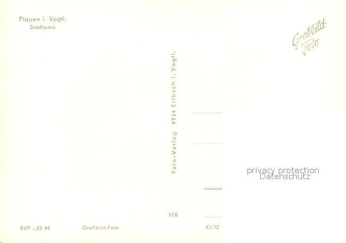 73593336 Plauen Vogtland Stadtpark Teich Fontaene postalisch nicht gelaufen Erhaltung siehe scans [FriedD77] KatCode: 11110014166000