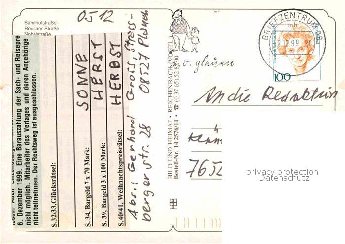 72725440 alte Postkarte Plauen Vogtland Strassenpartien Gebaeude Innenstadt Stadt an der Weissen Elster postalisch gelaufen Erhaltung siehe scans [FriedD77] KatCode: 11110014166000
