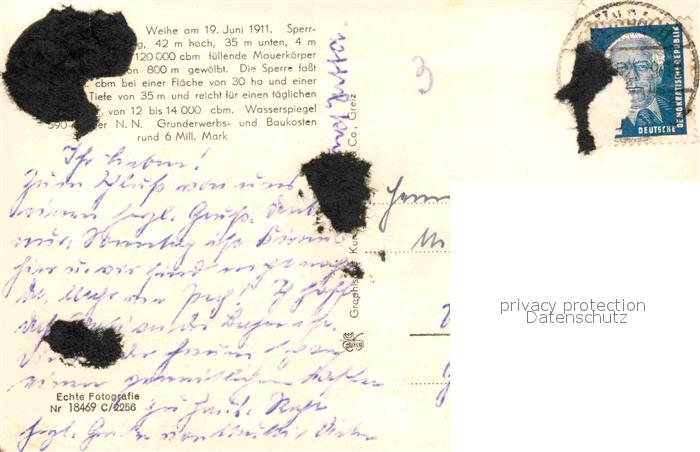 72632170 alte Postkarte Plauen Vogtland Talsperre Stausee postalisch gelaufen Erhaltung siehe scans [FriedD77] KatCode: 11110014166000