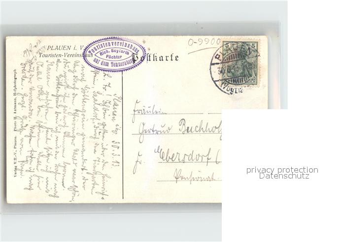 42000056 alte Postkarte Plauen Vogtland Touristen Vereinshaus postalisch gelaufen Erhaltung siehe scans KatCode: 11110014166000