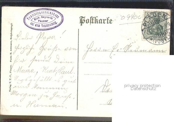 42247519 alte Postkarte Plauen Vogtland Touristenhaus am Tenneraberg Tennera Pavillon postalisch gelaufen Erhaltung siehe scans KatCode: 11110014166000