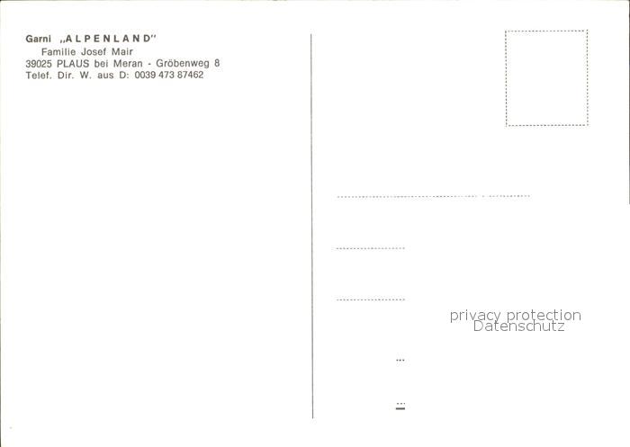 Plaus Meran Garni Alpenland postalisch nicht gelaufen Erhaltung siehe scans