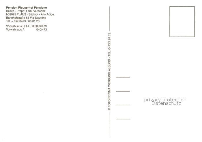 Plaus Meran Pension Plauserhof postalisch nicht gelaufen Erhaltung siehe scans [WerneD78]