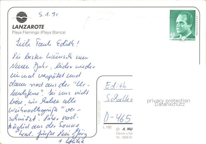 old postcard Playa Blanca Playa Flamingo postalisch gelaufen Erhaltung siehe scans