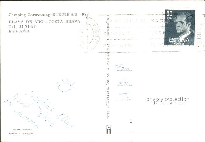 old postcard Playa de Aro Cataluna Camping Caravaning Riembau Swimming Pool Kueste Fliegeraufnahme postalisch gelaufen Erhaltung siehe scans