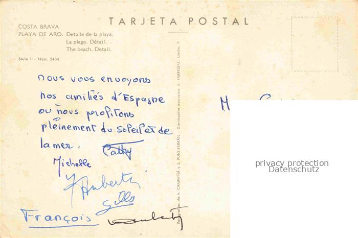 74036483 Playa de Aro Cataluna ES Detalle de la playa Partie am Strand postalisch nicht gelaufen Erhaltung siehe scans [FriedD77] KatCode: 11510
