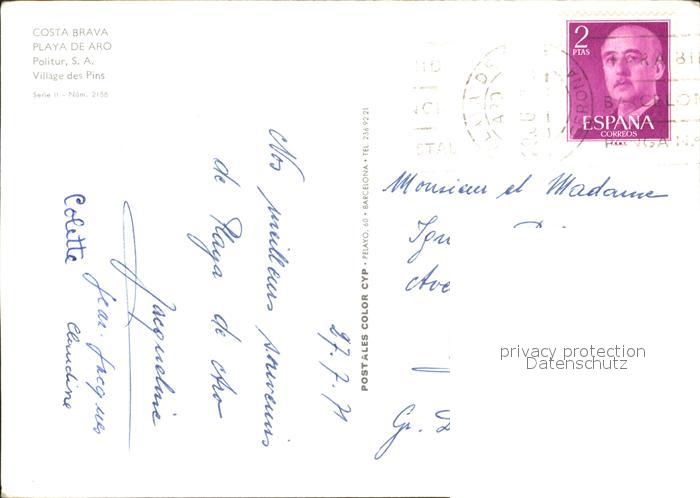 old postcard Playa de Aro Cataluna Village des Pins postalisch gelaufen Erhaltung siehe scans