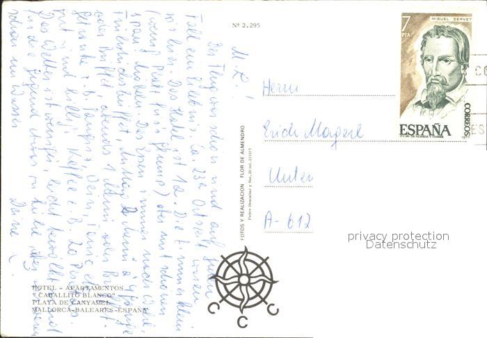 old postcard Playa De Canyamel Hotel Apartamentos Caballito Blanco Swimming Pool postalisch gelaufen Erhaltung siehe scans