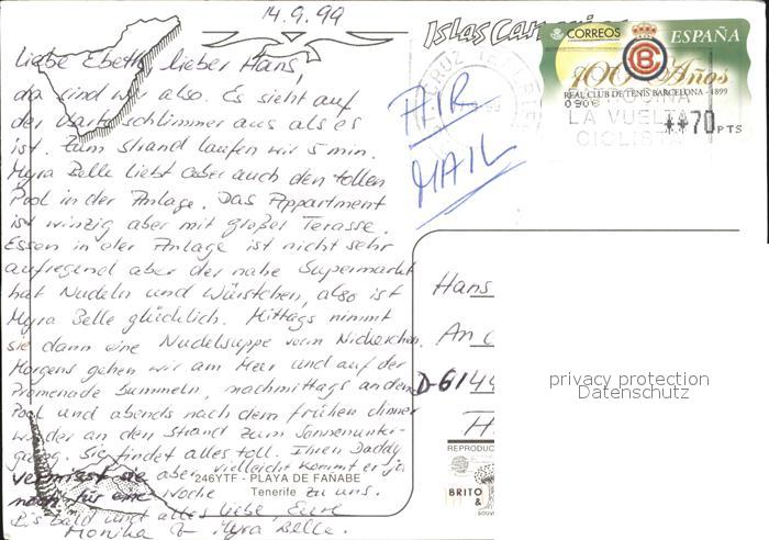 old postcard Playa de Fanabe Panorama postalisch gelaufen Erhaltung siehe scans