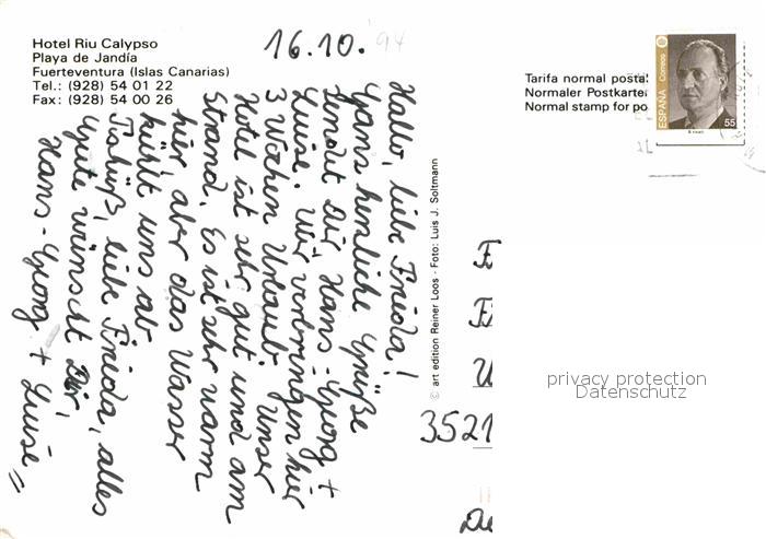 old postcard Playa de Jandia Hotel Rui Calypso Strand PoolTeilansicht postalisch gelaufen Erhaltung siehe scans [AndreD76]