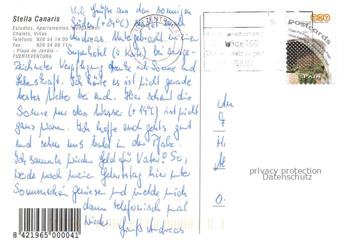 74005687 old postcard Playa de Jandia Stella Canaris Appartements Pool postalisch gelaufen Erhaltung siehe scans [WerneD78] KatCode: 11510