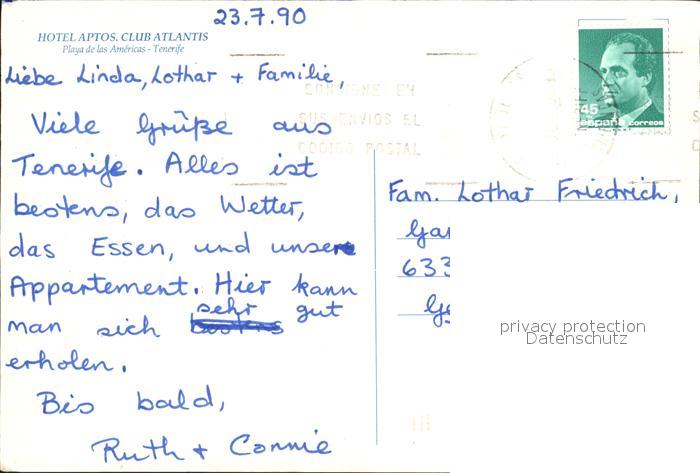 old postcard Playa de las Americas Hotel Aptos Club Atlantis Schwimmbad postalisch gelaufen Erhaltung siehe scans