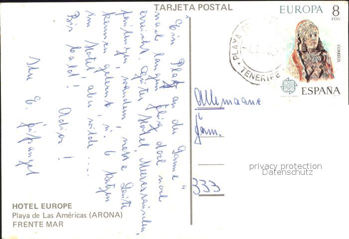 old postcard Playa de las Americas Hotel Europe Frente Mar postalisch gelaufen Erhaltung siehe scans