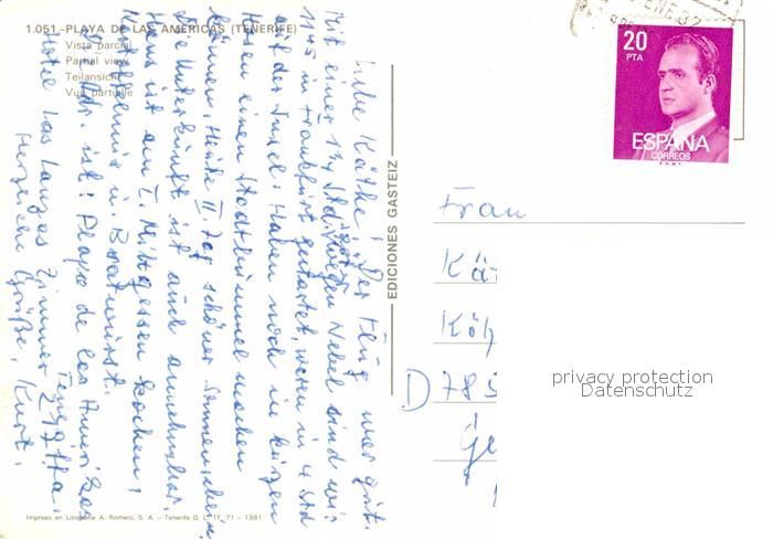 72857456 old postcard Playa de las Americas Strandpartie Hotels postalisch gelaufen Erhaltung siehe scans [WerneD78] KatCode: 11510