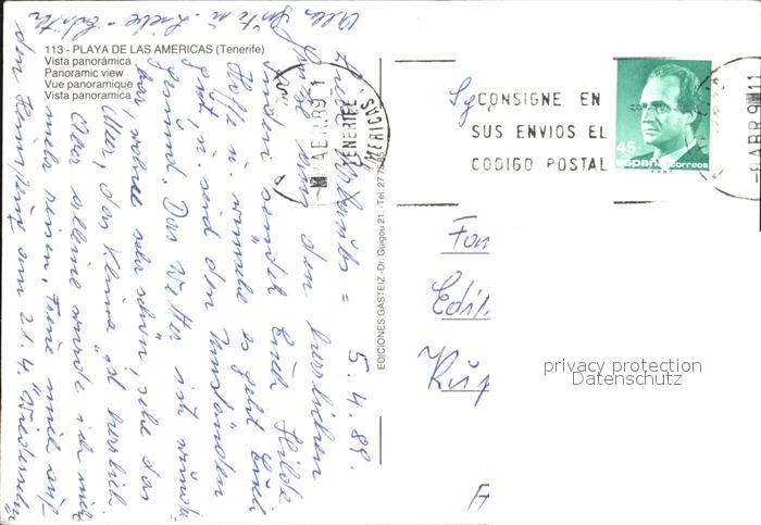 old postcard Playa de las Americas Vista aerea postalisch gelaufen Erhaltung siehe scans