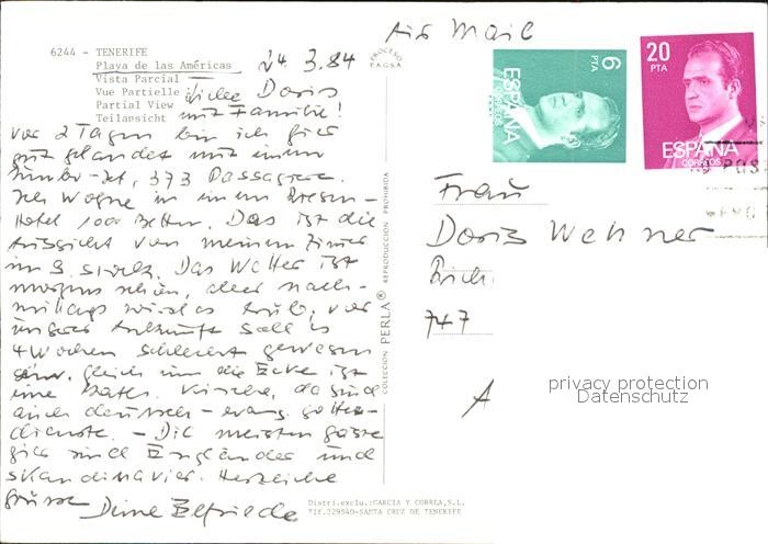 old postcard Playa de las Americas Vista parcial Hotel Villamar postalisch gelaufen Erhaltung siehe scans [WerneD78]