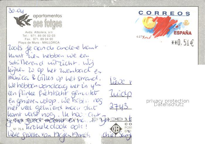 old postcard Playa de Muro Apartamentos ses fotges Meerblick Fliegeraufnahme postalisch gelaufen Erhaltung siehe scans