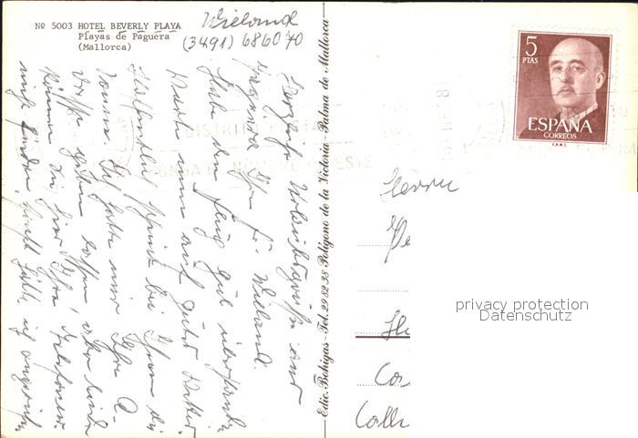 old postcard Playa de Paguera Mallorca Hotel Beverly Playa Fliegeraufnahme postalisch gelaufen Erhaltung siehe scans [WerneD78 kv017box]