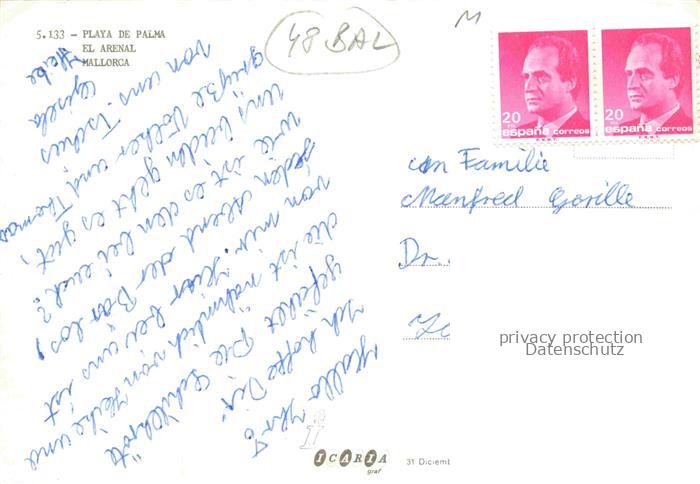 74142354 old postcard Playa de Palma Mallorca ES Panorama Hotels Strand postalisch gelaufen Erhaltung siehe scans [FriedD77] KatCode: 11510