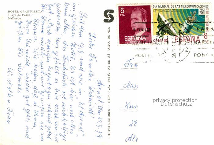 old postcard Playa de Palma Mallorca Fliegeraufnahme Hotel Gran Fiesta mit Strand postalisch gelaufen Erhaltung siehe scans [LiesaD40]
