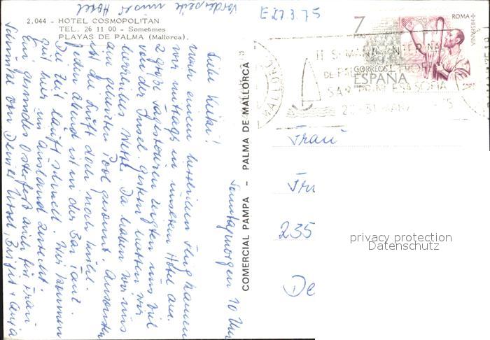 old postcard Playa de Palma Mallorca Hotel Cosmopolitan postalisch gelaufen Erhaltung siehe scans [LiesaD40]