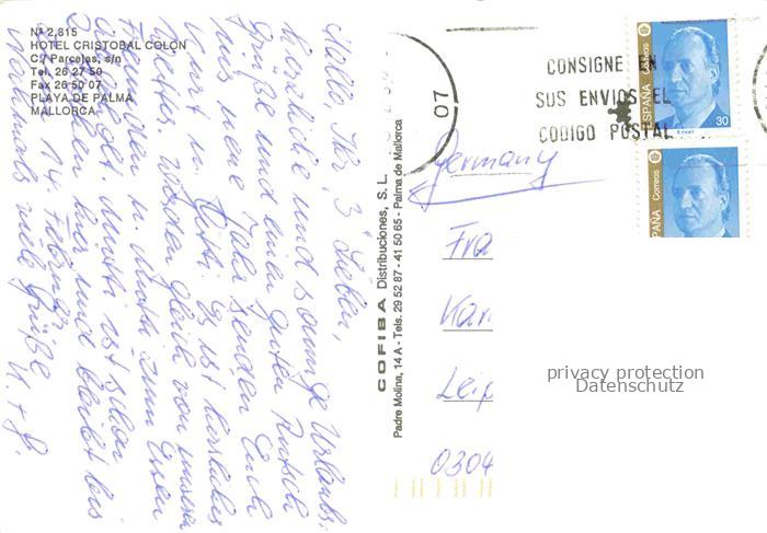 74111031 old postcard Playa de Palma Mallorca Hotel Cristobal Colon Gastraum Rezeption Bar postalisch gelaufen Erhaltung siehe scans [WerneD78] KatCode: 11510