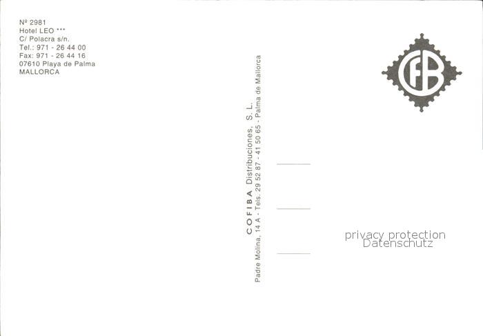 Playa de Palma Mallorca Hotel Leo Bar Zimmer Pool postalisch nicht gelaufen Erhaltung siehe scans [WerneD78 kt117box]