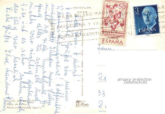 74043647 old postcard Playa de Palma Mallorca Hotel los Angeles Playa postalisch gelaufen Erhaltung siehe scans [FriedD77] KatCode: 11510