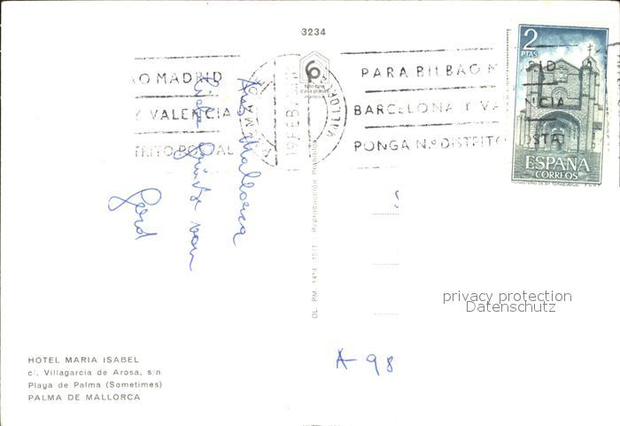 old postcard Playa de Palma Mallorca Hotel Maria Isabel postalisch gelaufen Erhaltung siehe scans