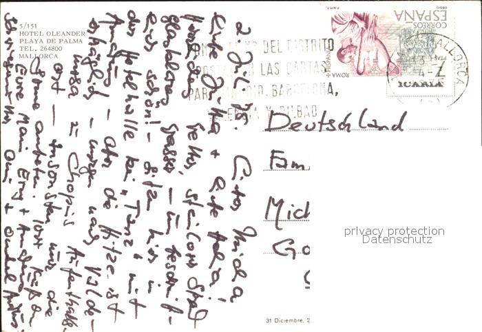 old postcard Playa de Palma Mallorca Hotel Oleander Swimmingpool Bar Foyer Zimmer postalisch gelaufen Erhaltung siehe scans